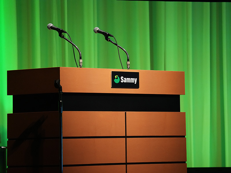 全国のサミーグループ社員様が一堂に会し、8年ぶりにグループの中期事業戦略の発表会が開催されました。発表会後には、懇親会を兼ねた社内優秀者を称える表彰式も行われました。