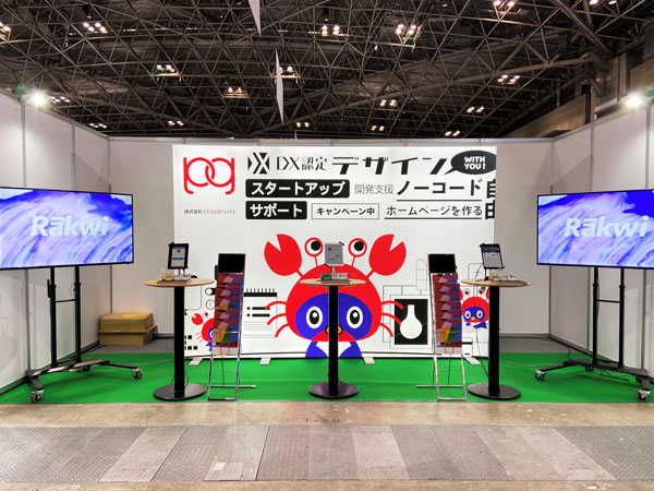 Japan IT Week は最新のIT製品/サービスが一堂に集まる、日本最大のIT展示会です。弊社はアプリ開発やDX開発支援サービスを展開されている「株式会社Playground様」ブースをプランニングから施工までトータルサポートさせていただきました。